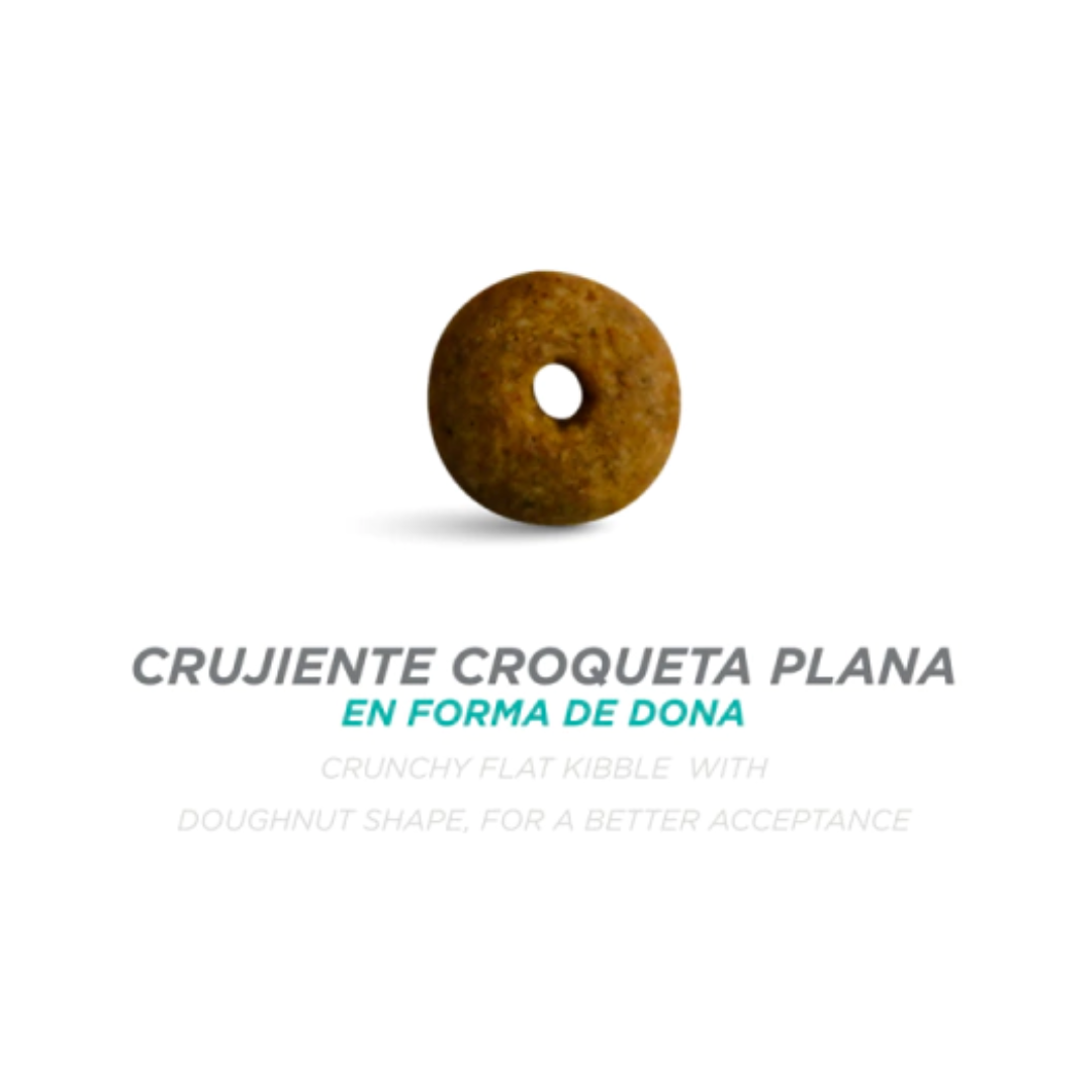 teína altamente digestible como primer ingrediente. Condroitina que ayuda a contrarrestar el desgaste articular por el sobrepeso. L-Carnitina para promover el metabolismo de las grasas. Crujiente croqueta plana en forma de dona. TAURINA Aminoácido esencial para mantener la salud cardíaca y ocular REDUCCIÓN CALÓRICA Bajo contenido calórico* *En comparación con NUPEC FELINO ADULT INDOOR OMEGA 3 Y OMEGA 6 Mantiene piel y pelaje saludables L-CARNITINA Promueve el uso de tejido graso como fuente de energía PREBIÓTICOS (MOS Y FOS) Para una microbiota intestinal saludable BALANCE DE FIBRAS DIETÉTICAS Promueve la movilidad y bienestar intestinal PROTEÍNA ALTAMENTE DIGESTIBLE Para conservar la masa muscular CONDROITINA Regenerador articular que compensa el desgaste por el sobrepeso